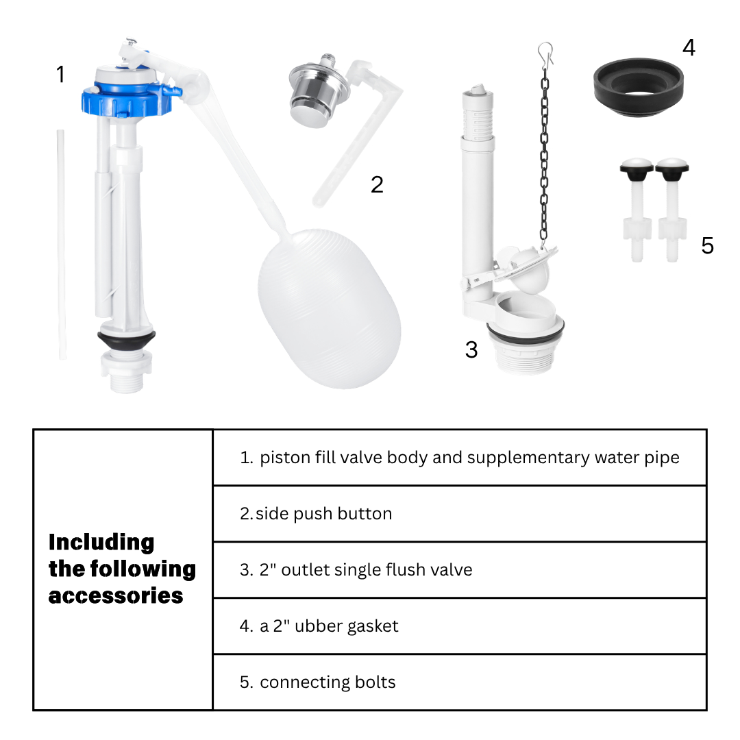 Product Name: 2 Inch Toilet Cistern Repair Kit Side Push Button | G1/2 Fill Valve & Single Flush Valve Set for Two Piece Toilet