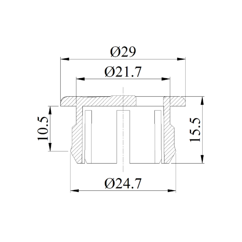 Este anillo de rebosadero es adecuado para lavabos con orificios de rebosadero de hasta 25 mm de diámetro. El material es plástico.