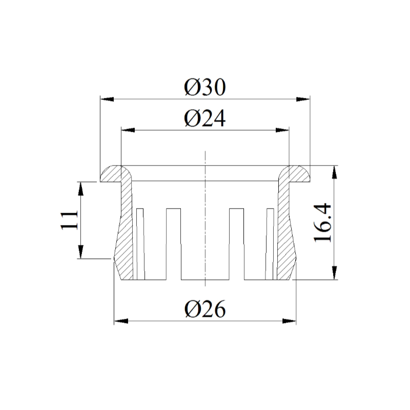 This overflow ring is suitable for wash basins with overflow hole diameters of up to 26mm.