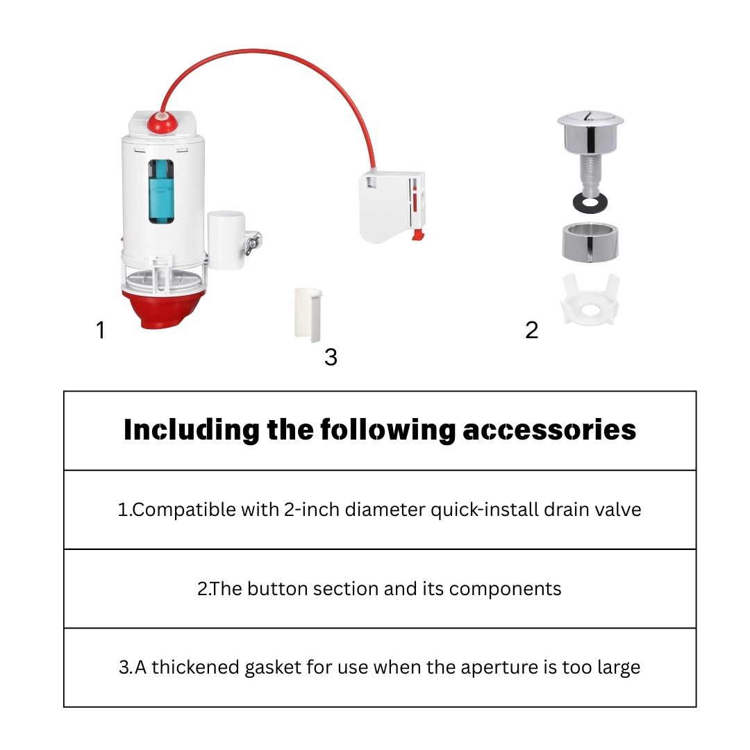 Product Name: Cable Control Dual Flush Valve Conversion Kit for Toilet Tank, Universal 2 Inch, Top & Side Button Compatible