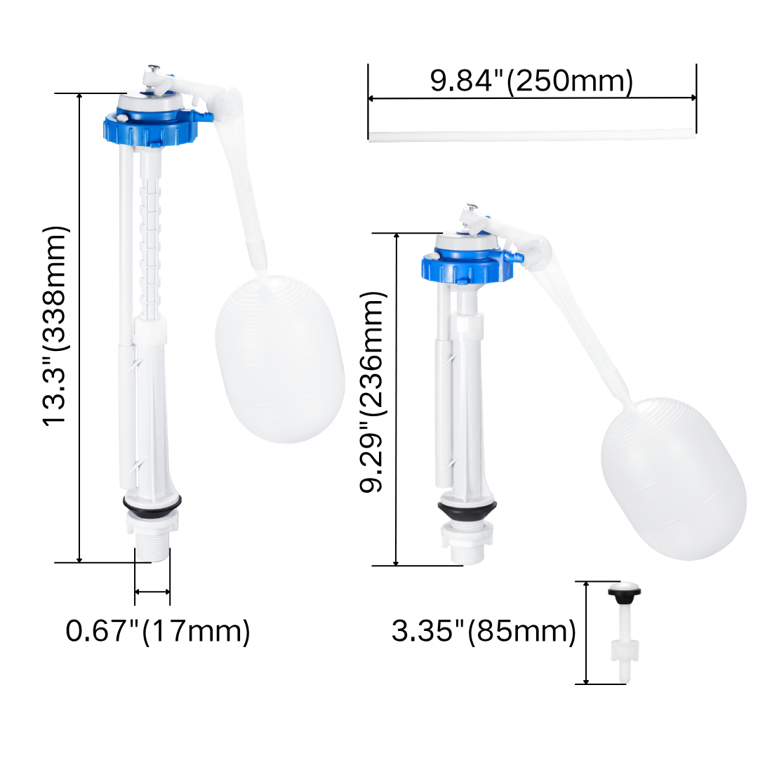 Fill valve height is adjustable, allowing flexible installation across different tank sizes.