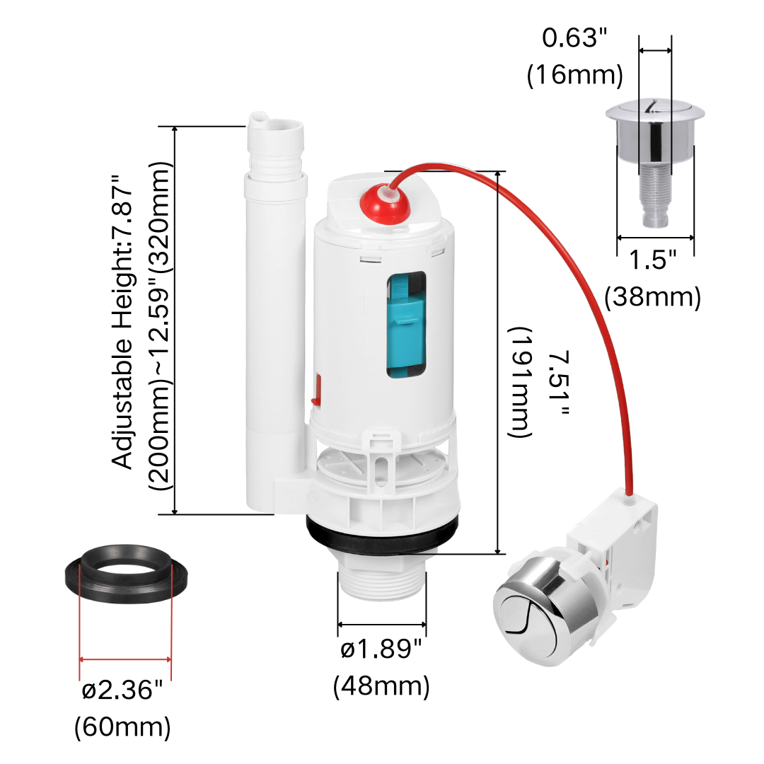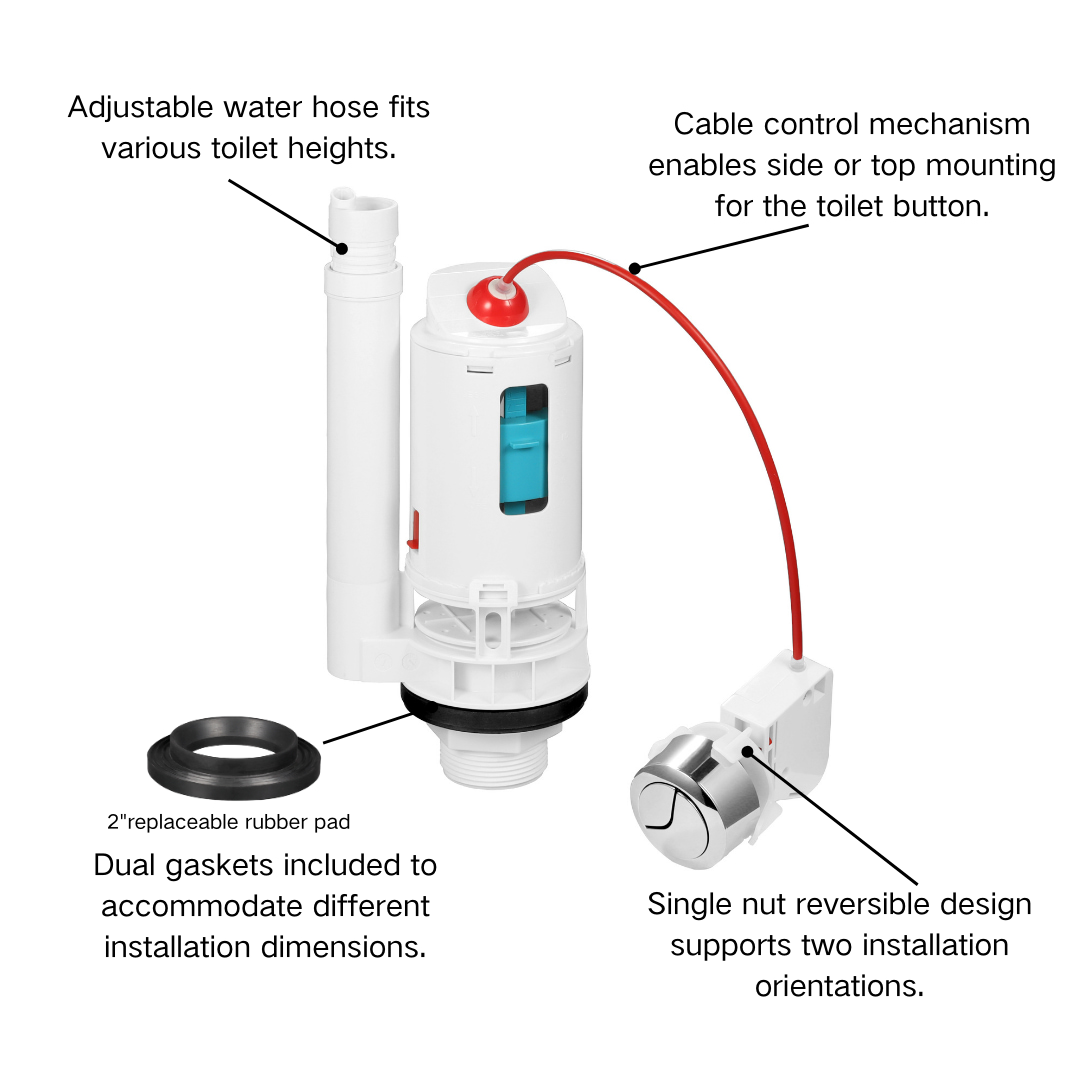 Product Name: Universal 1.5" & 2" Cable Dual Flush Valve Kit for Toilet Tank Replacement